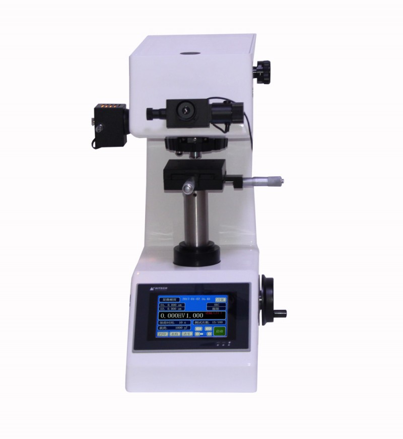 MVS-1000Z觸摸屏數顯顯微維氏硬度計在機械,光學,光源上采用獨特的、精密的設計,使壓痕成像更清晰,測量更精確。采用全新彩色觸摸顯示屏LCD顯示,操作界面采用菜單式結構,可在操作面板上選擇硬度標尺HV或HK,測試的硬度值,自動計算,自動顯示。可進行各種硬度值相互轉換。本機配有10倍數顯測量顯微鏡和40倍物鏡都能參與測量,使測量范圍更大,應用范圍更廣,并采用大屏幕,操作上更直觀,更清晰,在屏幕上能顯示試驗方法、試驗力、壓痕長度、硬度值、試驗力保持時間、測量次數、日期、時間、硬度轉換值等功能。它具有轉換標尺、存儲、打印和RS232接口等功能, 壓頭與物鏡自動轉換定位精準,效率更高,并擁有可供連接數碼相機和CCD攝像頭的螺紋接口,方便選電腦軟件分析測量。